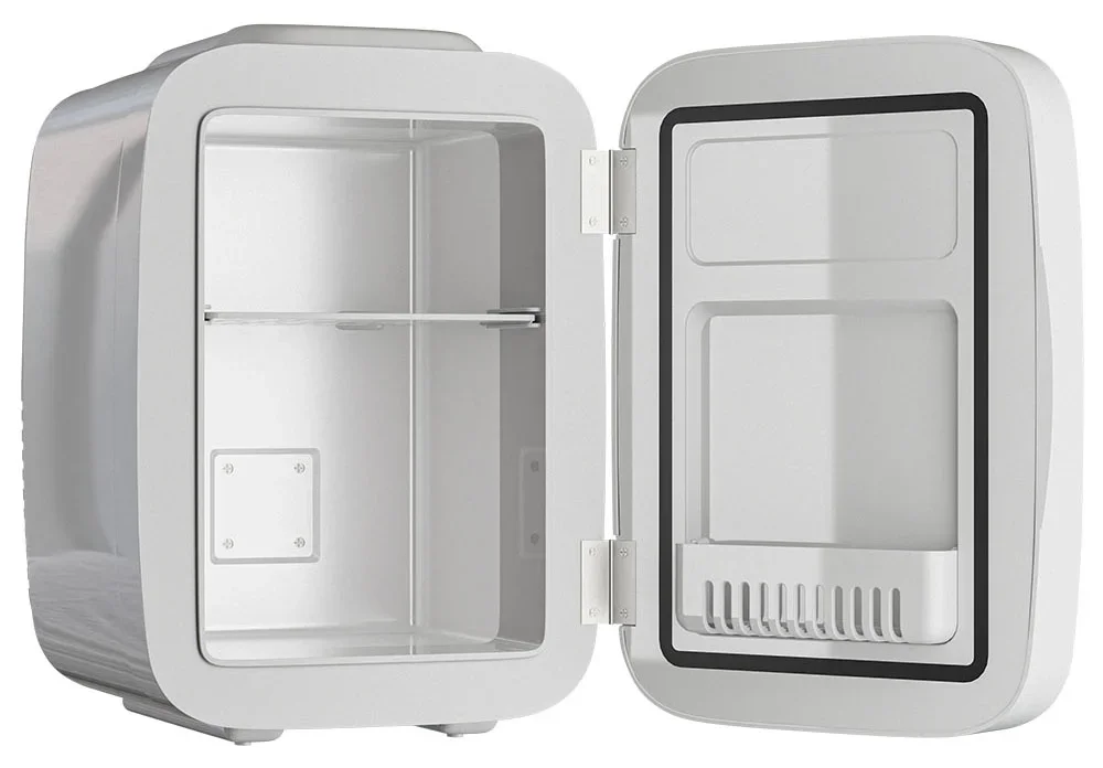 Холодильник для косметики и напитков Meyvel MD-04C3W RGB Выглядит как компактный прибор белого цвета с лаконичным прямоугольным силуэтом. Габариты 27.6×18.8×26 см и легкий вес позволяют незаметно разместить его на полке, тумбе или рядом с зеркалом. Однодверная конструкция с правым дверным упором открывается свободно и упрощает доступ к содержимому даже в ограниченном пространстве. Модель отдельностоящая, предназначена для хранения косметики и напитков: одна камера общим объёмом 4 л